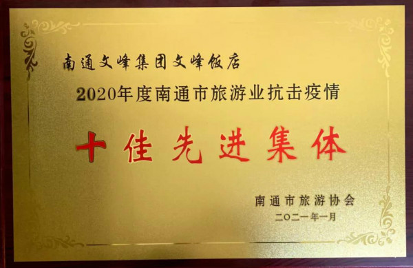 3月2日,在南通市旅游協會第三屆四次理事(擴大)會議上,江蘇文峰集團旗下南通文峰飯店及企業員工分別獲得2020年度南通市旅游業“先進集體”和“優秀個人”榮譽稱號。