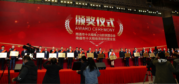 在3月27日召開的南通市民營經濟發展大會暨第三屆通商大會上,江蘇文峰集團榮獲“南通市十大稅收貢獻民營企業”稱號。